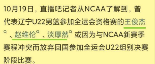 當年姚明在NBA打球期間,遇到一些重要的賽事,不也回來過嗎?更何況他們只是打NCAA聯(lián)賽,請20天假難道真的請不到嗎?
