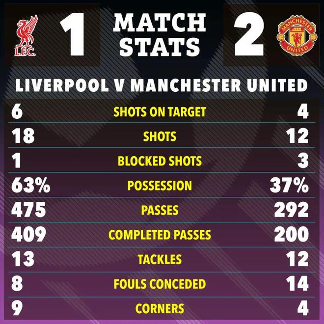 利物浦在比賽最后時刻仍有機會扳平,不過,加克波近在咫尺的頭球偏離了目標(biāo),曼聯(lián)最終守住了2-1的勝局。這場勝利當(dāng)之無愧,因為紅魔領(lǐng)先時間長達83分鐘。而利物浦明顯狀態(tài)低迷,除了加克波屢失良機,薩拉赫在無人防守時的射門,也更像是解圍。