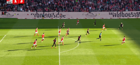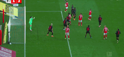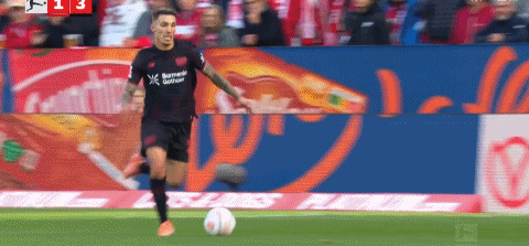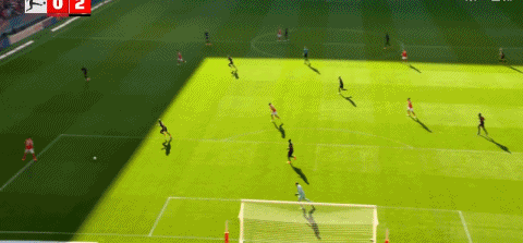 第45+2分鐘,格里馬爾多破門完成梅開二度,勒沃庫森3-1