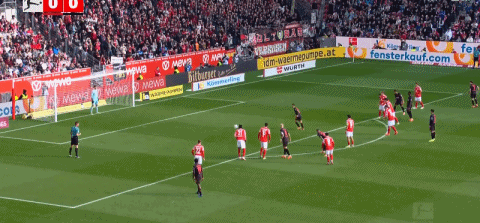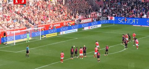 第34分鐘,巴代解圍失誤,李在城破門扳回一城,美因茨1-2