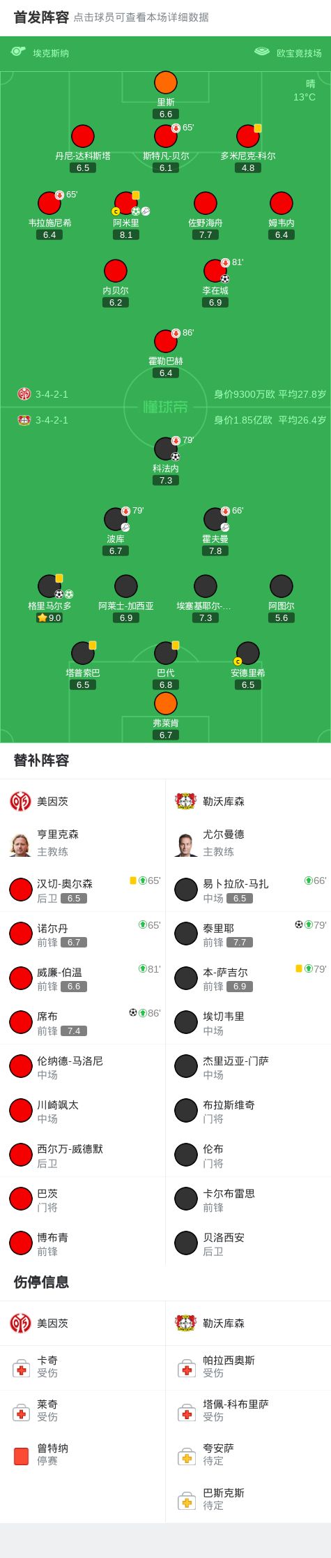 勒沃庫森客場4-3美因茨,格里馬爾多雙響,泰里耶制勝