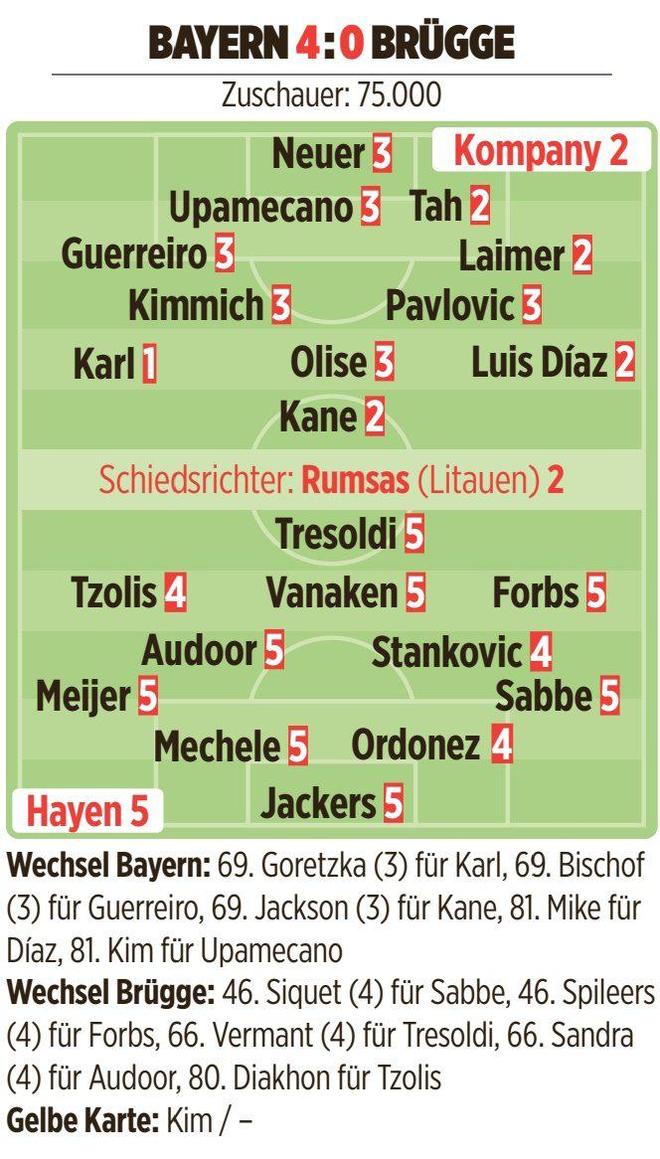 圖片報評分拜仁vs布魯日:卡爾最高,布魯日多人低分