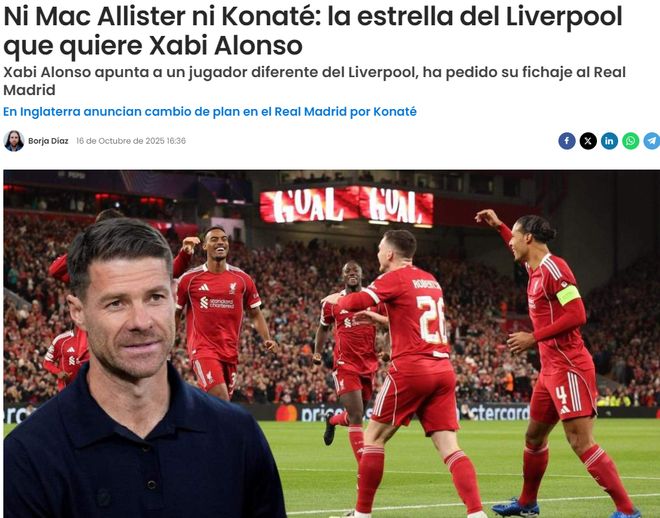在本周末聯(lián)賽開始之前,西班牙的一份驚人報道稱哈維·阿隆索已告訴皇馬高層密切關(guān)注這位德國中場。據(jù)Defensa Central報道,阿隆索“要求皇馬密切關(guān)注維爾茨在利物浦的未來”。阿隆索在勒沃庫森執(zhí)教時與維爾茨共事,并一直希望將他帶到皇馬,直到利物浦搶先一步。